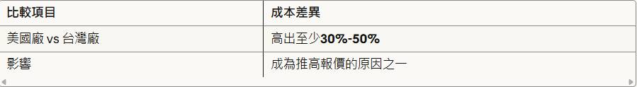 🏭 美國廠成本計畫